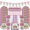 - Set: 20 Teller, 20 Becher, 20 Strohhalme, 10 Geburtstagstaschen, 1 Banner, 20 Handtücher.