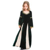 Dieses wunderschöne, hochwertige Kleid besteht aus einem sehr weichen Samtstoff. Der Schnitt der Ärmel erinnert an den Stil der damaligen Prinzessinnen, indem sie immer weiter auslaufen. Ihre Tochter wird sich mit den goldenen Mustern, die an die goldenen Ringe erinnern, wie eine echte Königin fühlen.
